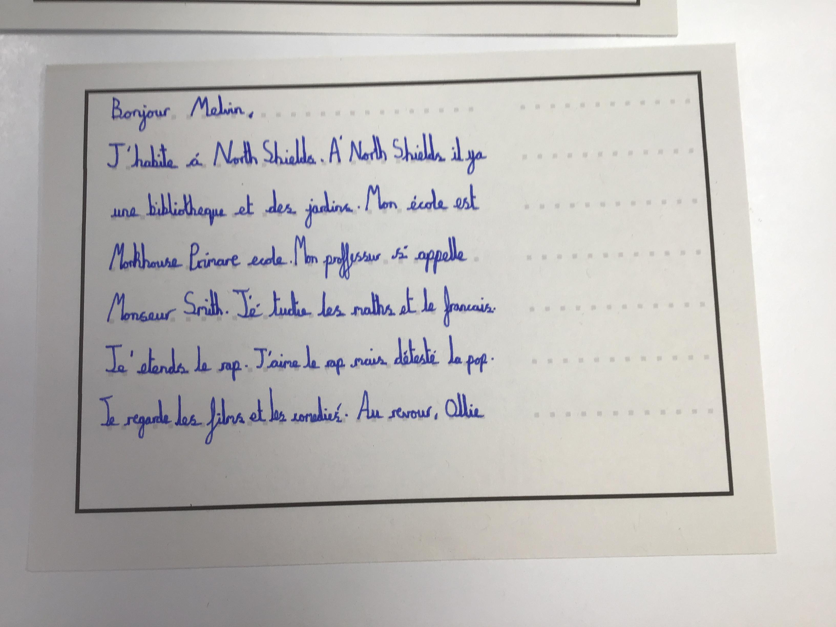 Pen Pal Work in Year Six