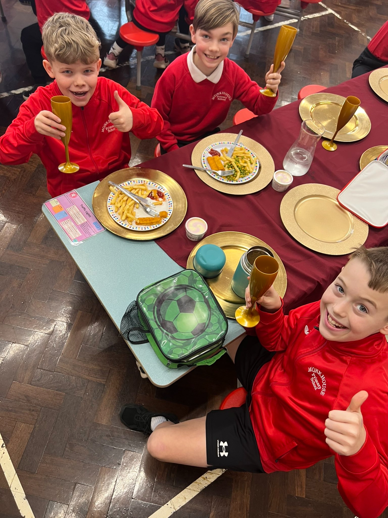 We have adapted the Golden Table in response to the children's requests. The children who are chosen from Reception class up to Yr 4 are allowed to invite a friend to join them, so the children will have someone they know with them. For yr 5 & 6 we now have Fast Track passes in to the lunch hall , which they can use at anytime bringing a friend with them also.The table will be linked to one of our school values. Spring term was linked to the value of Respect. In Summer 1 we will be linking it Kind and in Summer 2 we will be linking it to courageous.