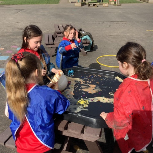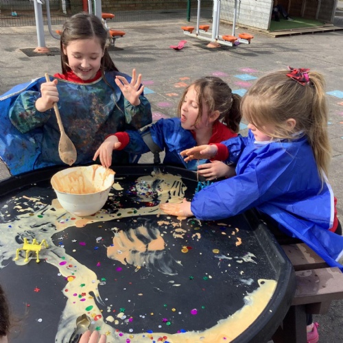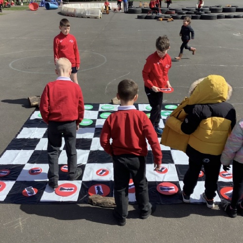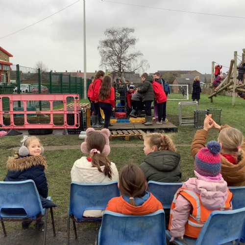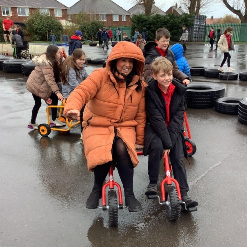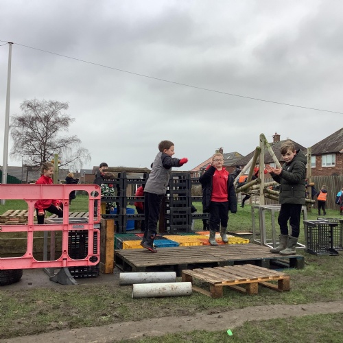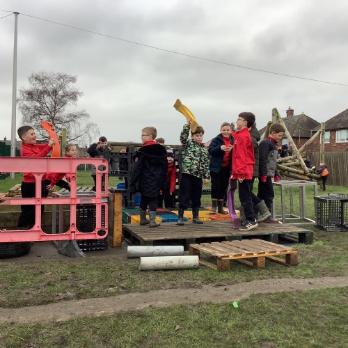 Children are happier, more sociable and resilient. As a result of the freedom and responsibility that comes with adventurous playtime behavioural incidents have reduced and children return to the classroom ready to learn. We have an abundance of play equipment that has been kindly donated by our community. Children have the opportunity to play on scooters, wheeled trays. They can perform with their friends on the stage using instruments and fancy dress clothes. Build dens,  experiment in the mud kitchen and create their own role play areas. Adventurous play has not only improved the opportunities and experiences at break times, it has also had an impact on the children’s creativity, stamina and confidence within the classroom.