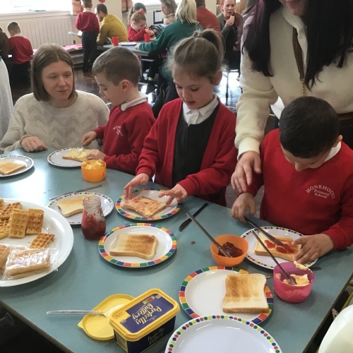 Finally, we help to solve the problem of what do do when 'A Tiger Comes to Tea' and help to plan and prepare our very own Monkhouse cafe! This involves, planting and growing produce, completing our very own online shop and preparing healthy food choices. To celebrate and share our learning, we invited our families into school to the opening of Monkhouse Cafe.