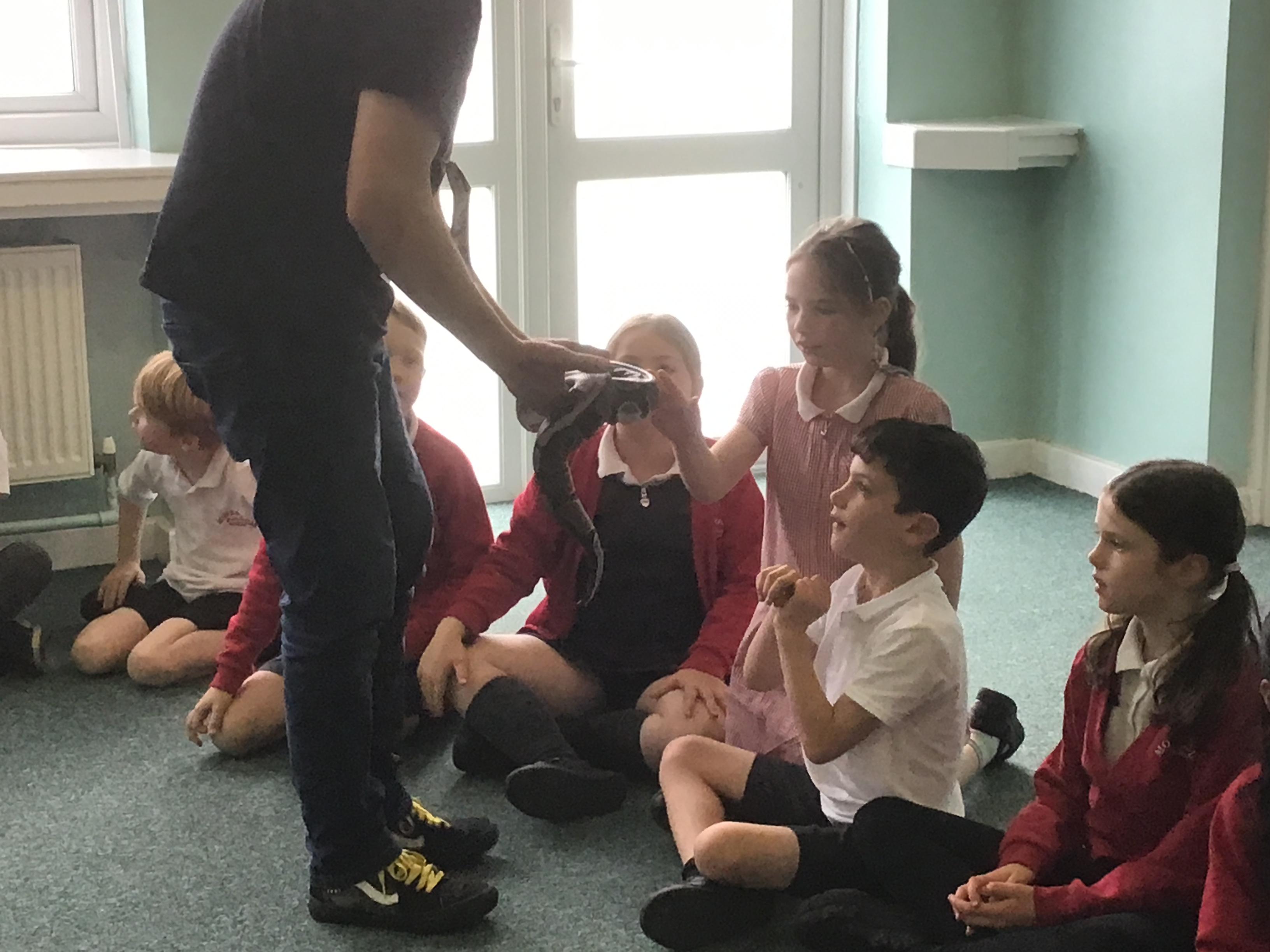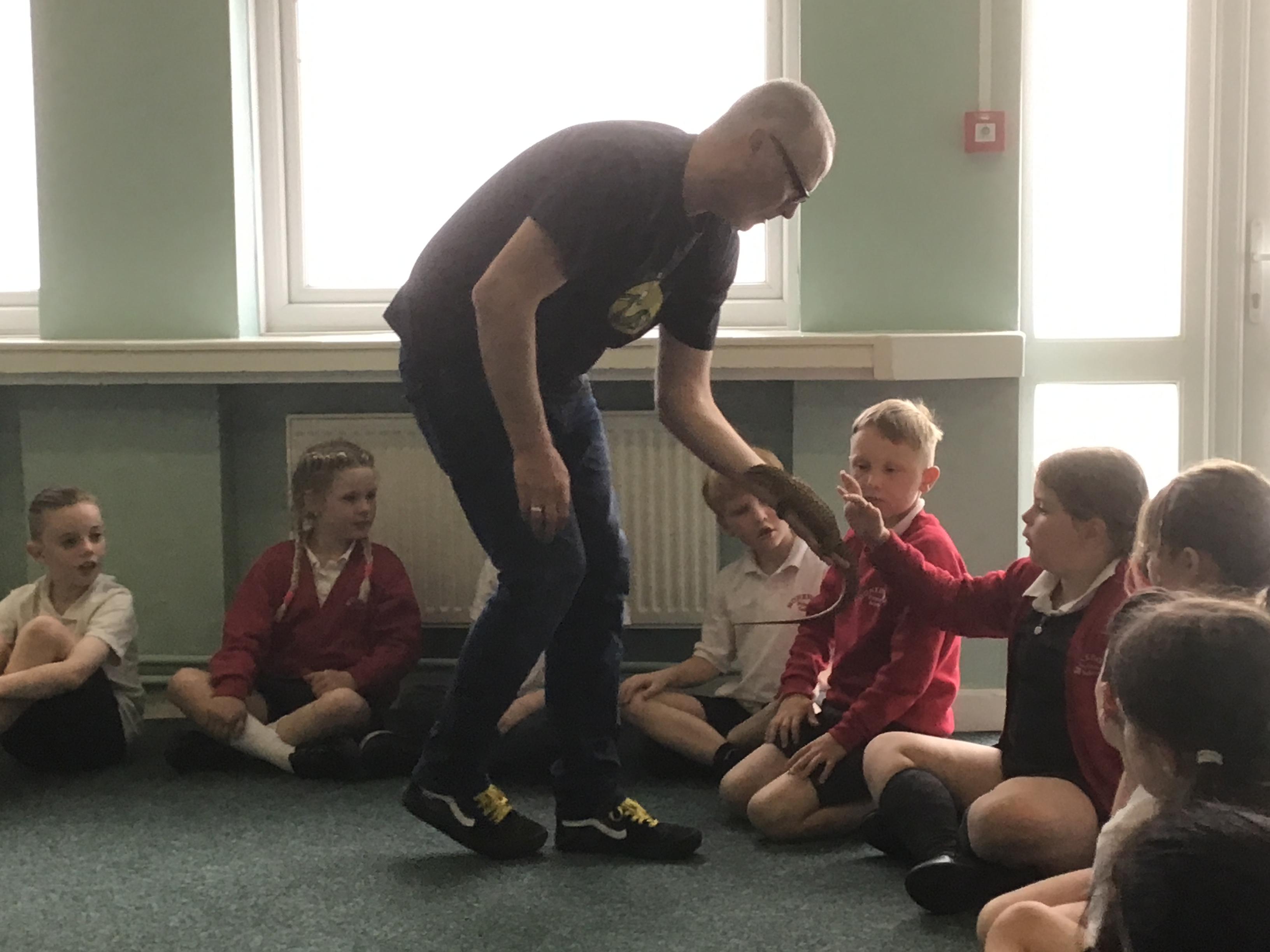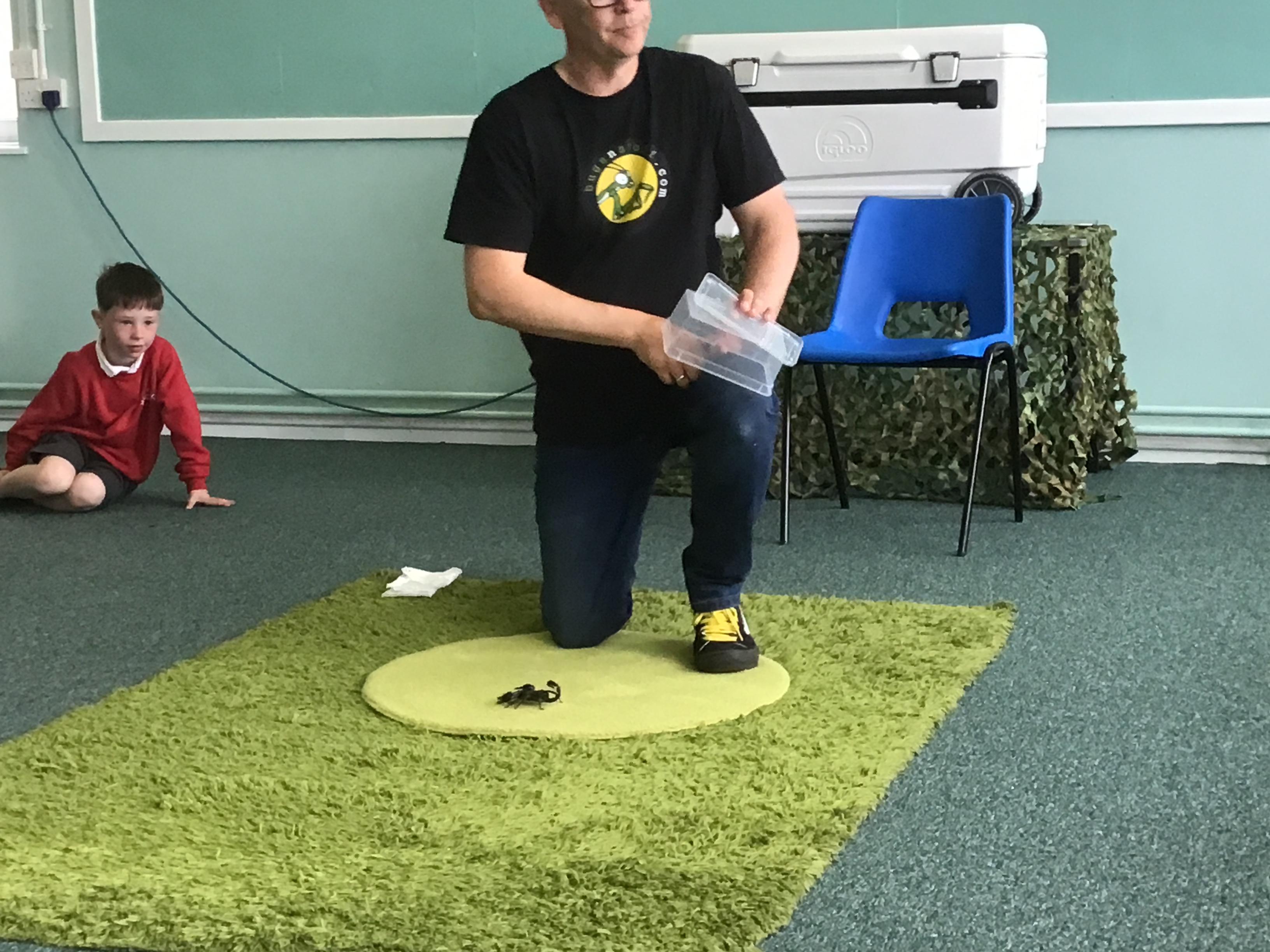 Science week was given a great start when the Bug Man visited our school and brought a fascinating range of exotic animals, including a python, tarantula, scorpion, and grasshopper. The children were excited and curious, showing great kindness and respect throughout the session, reflecting our school values beautifully. They had the opportunity to learn about each animal, their unique features, and the natural habitats they come from. It was an engaging, educational experience that sparked wonder and deepened their understanding of the natural world.