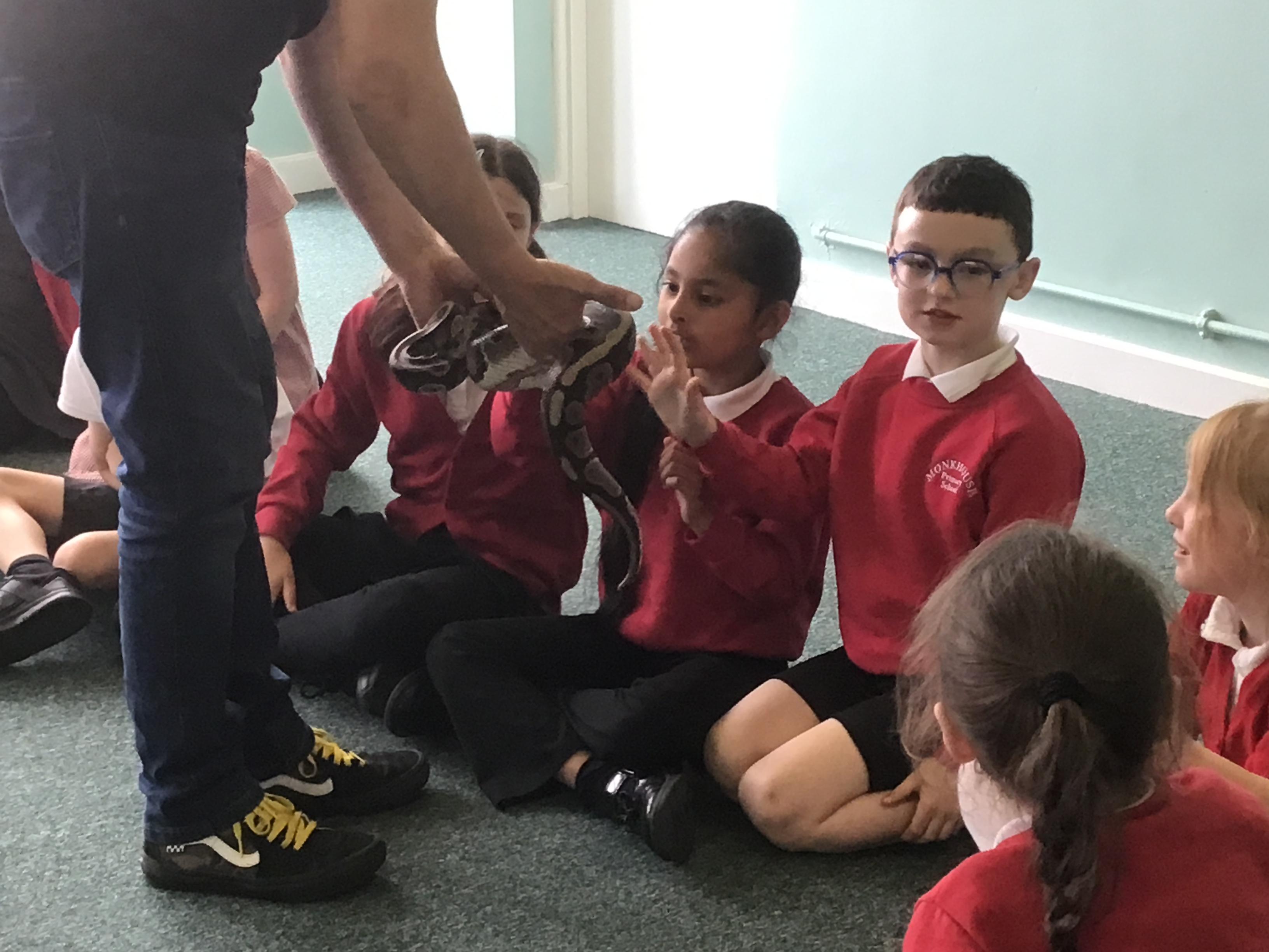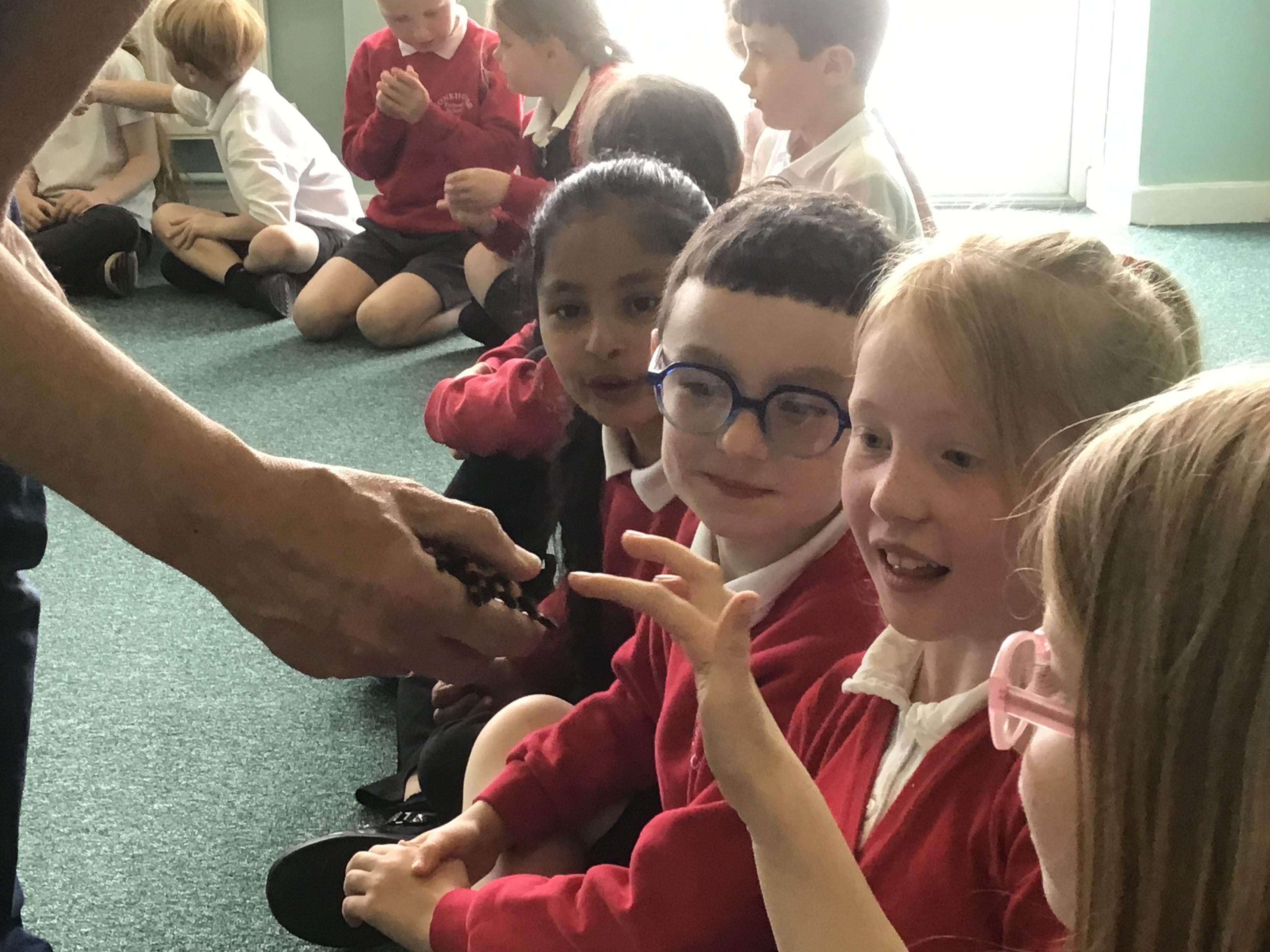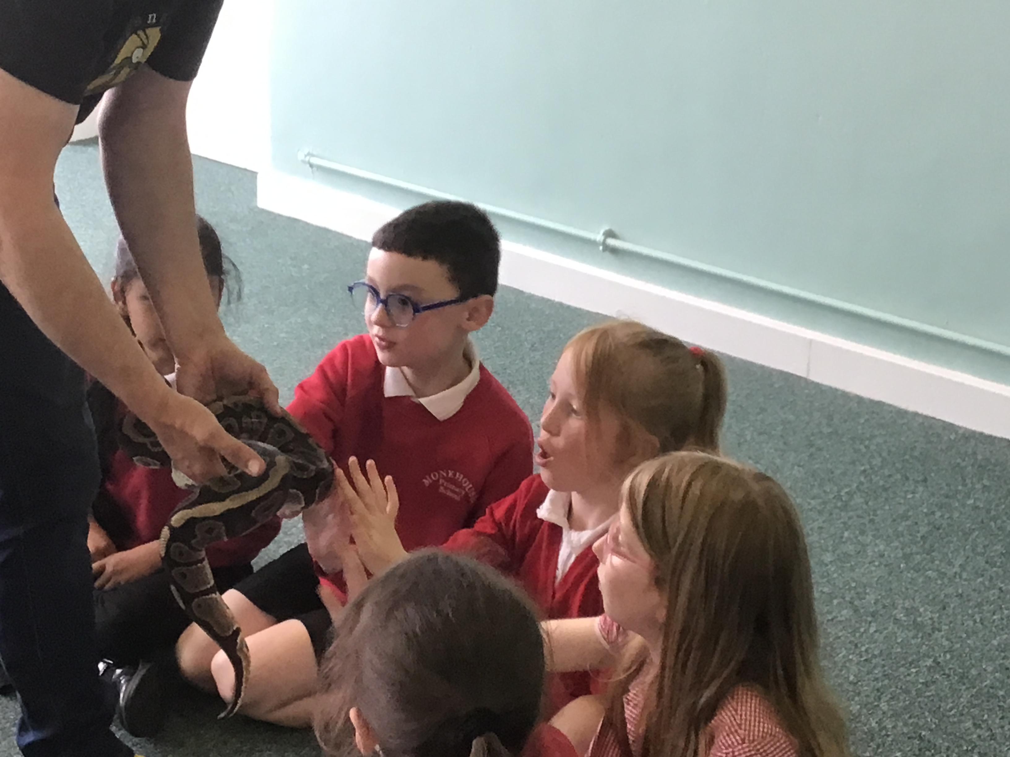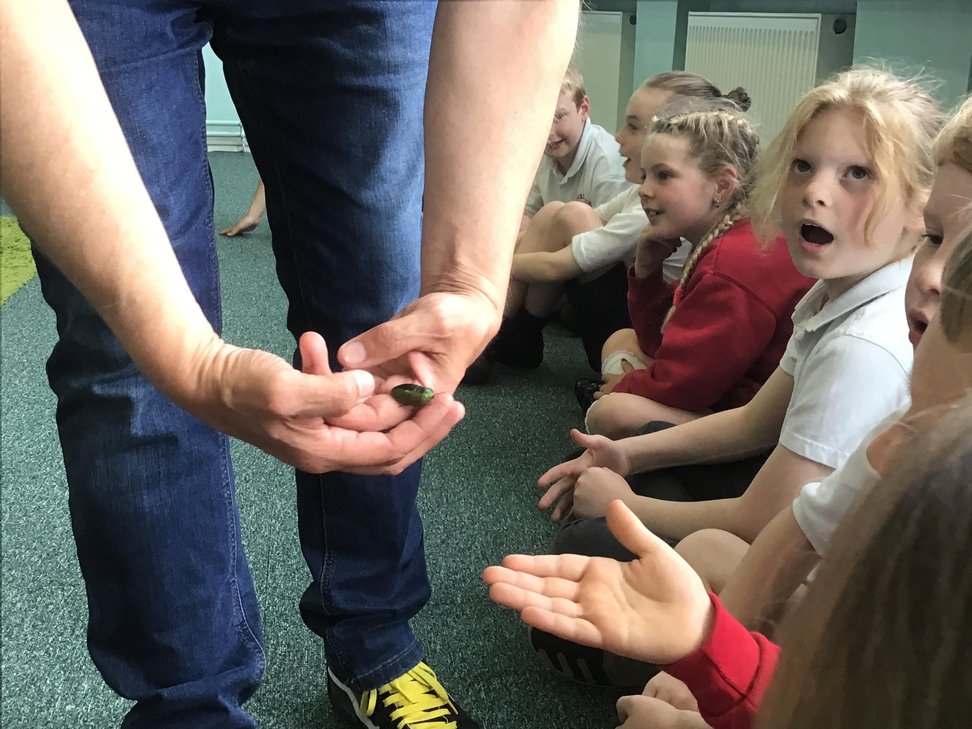Science week was given a great start when the Bug Man visited our school and brought a fascinating range of exotic animals, including a python, tarantula, scorpion, and grasshopper. The children were excited and curious, showing great kindness and respect throughout the session, reflecting our school values beautifully. They had the opportunity to learn about each animal, their unique features, and the natural habitats they come from. It was an engaging, educational experience that sparked wonder and deepened their understanding of the natural world.